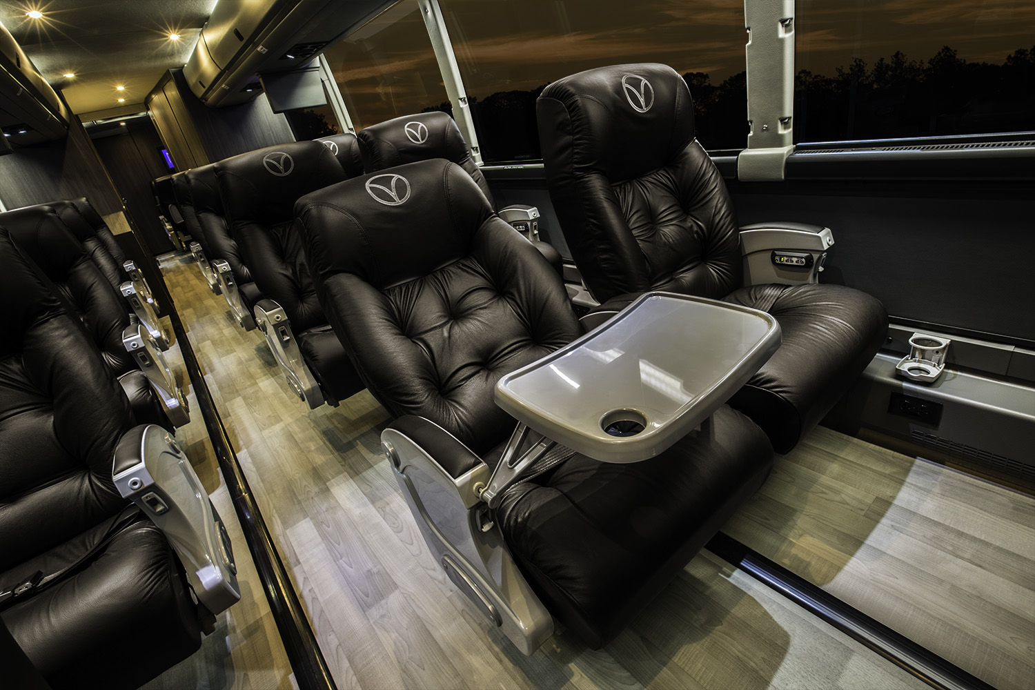 - Roomy, first-class-style leather seating (no middle seats)