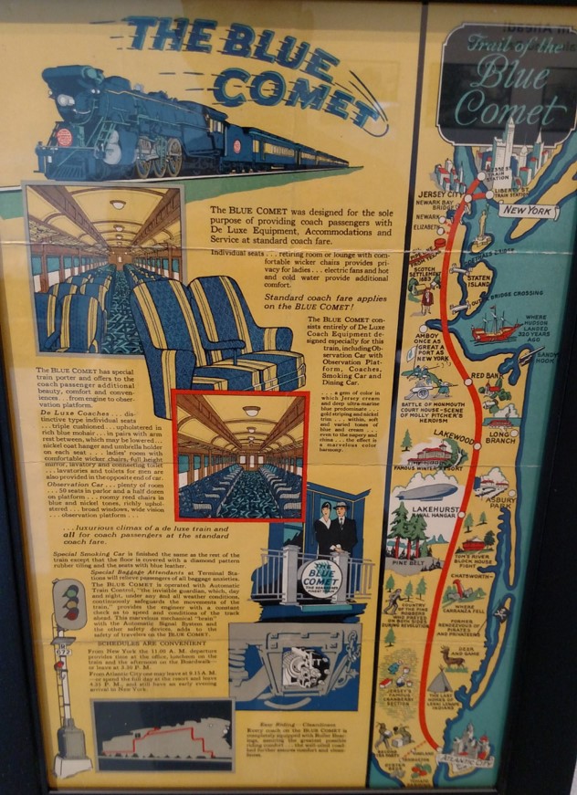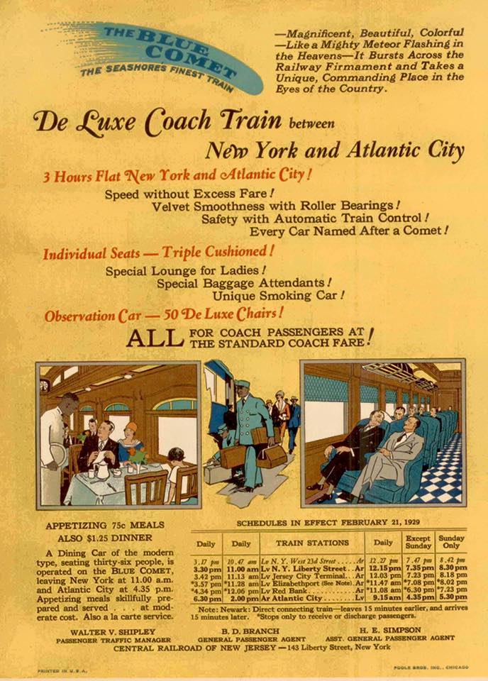 The 1929 marketing examples were for the Blue Comet, self-dubbed as “The Seashore’s Finest Train,” which transported passengers between Manhattan and New Jersey’s Atlantic City seaside resort.