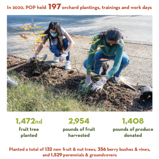 According to POP, “the exact mix of trees and plants in each orchard depends upon our community partner’s preferences as well as strategies for sustaining healthy, productive orchards.” This includes, for example: