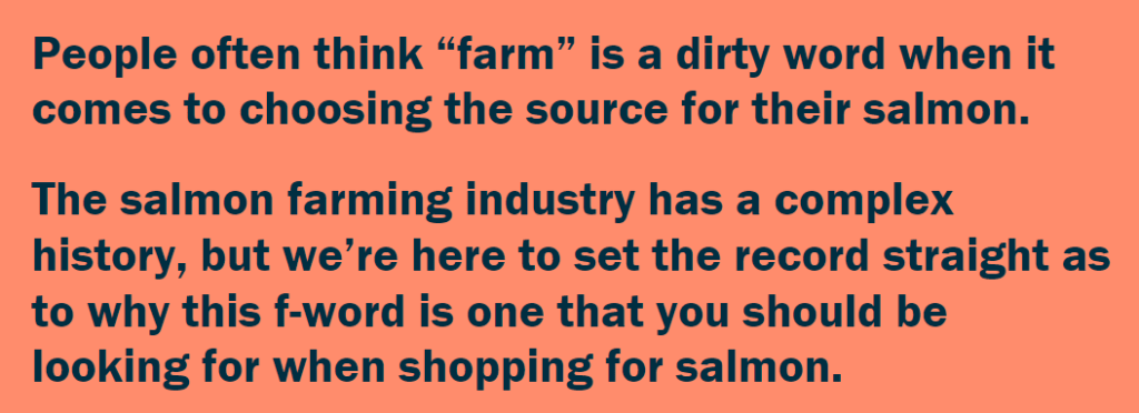 - Raise awareness and address what the company considers consumer misunderstanding about farmed salmon aquaculture